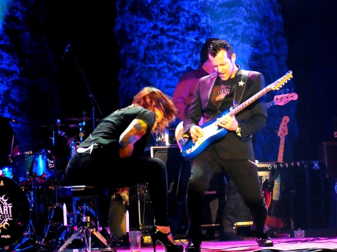 Der Zugabenteil schoss dich dann endgültig, wenn nicht schon längst geschehen, in andere Sphären. Beth Hart holte ihren Support, Gary Hoey, auf die Bühne, der zunächst mit der Band spielte und dann zusammen mit der Künstlerin eine absolut ergreifende, tränentreibende Version von Etta James „I`d rather be blind“ performte. Beth verausgabte sich vollends in dem Stück der Blues -und Jazzsängerin, steckte all ihre Emotionen und Erregungen in den finalen Song und wurde von einem Gary Hoey begleitet, der seinesgleichen suchte. Besser hätte es ein Joe Bonamassa nicht spielen können. Es herrschte ein unglaubliches emotionales Spannungsfeld zwischen Beth und Gary, welches sich komplett auf die gesamte Halle übertrug. Beth durchlebte den Song, sezierte ihn in seine musikalischen Bestandteile, gab ihm anschließend neues Leben, forderte ihn raus, sie war der Song! Ganz ehrlich, eine der besten Live-Versionen, die ich je gehört habe!