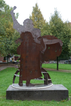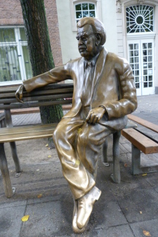 Zurück auf der belebten Severinsstraße, die Torburg nun im Rücken, läuft man stadteinwärts vorbei an vielen kleinen Geschäften, Restaurants und Cafes, welche ihre Schaufenster dekorativ geschmückt haben. Über den Waidmarkt geht es weiter auf der Straße Hohe Pfort, die dann zur berühmten Hohe Straße wird, Kölns ehemalige Prunkstraße und die Shopping-Meile für Touristen schlechthin. Diesen Trubel tue ich mir aber nun nicht an, sondern biege rechtzeitig rechts ab und habe den Rhein zum Ziel. Beim passieren des Heumarkt kommt mir der Einfall kurz einen Abstecher zu einem Denkmal einer weiteren Kölner Lichtgestalt zu machen. Auch dieser Herr steht natürlich in Verbindung mit Wolfgang Niedecken. Es ist der 1999 verstorbene Volksschauspieler Willy Millowitsch. Ihm zu Ehren errichtete man ihmnoch zu Lebzeiten eine große Bronzestaue, mitten in der Altstadt.