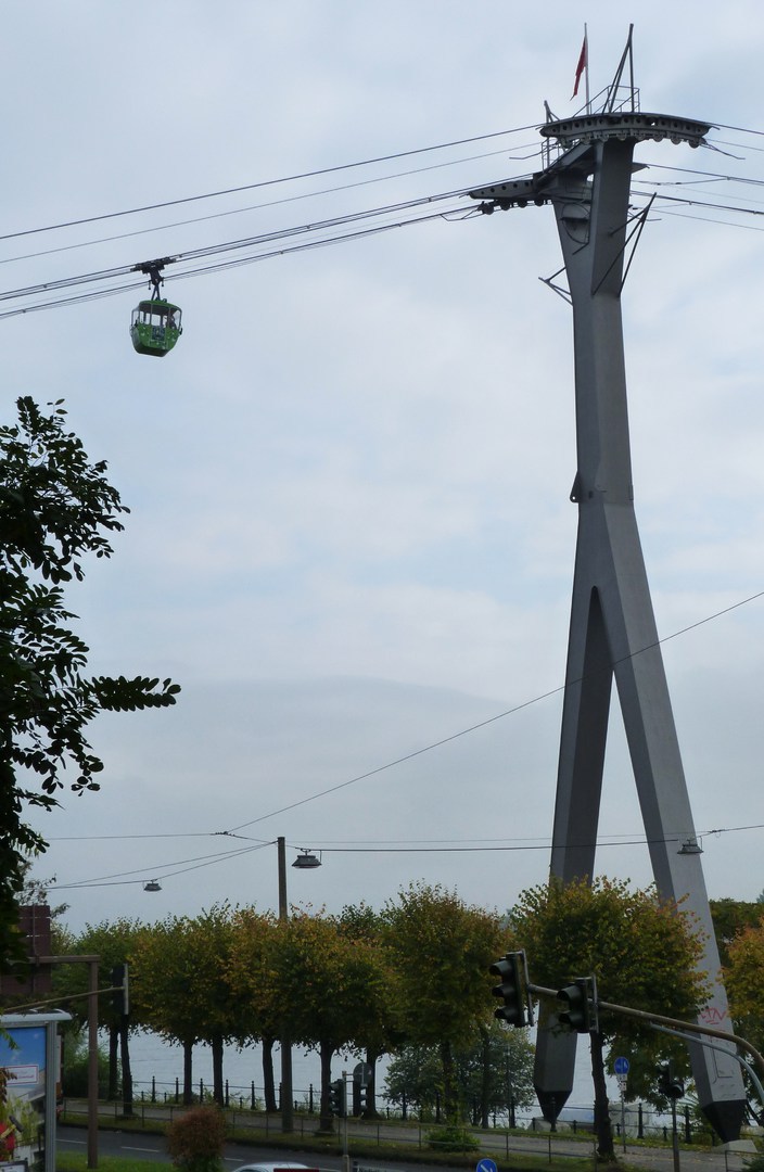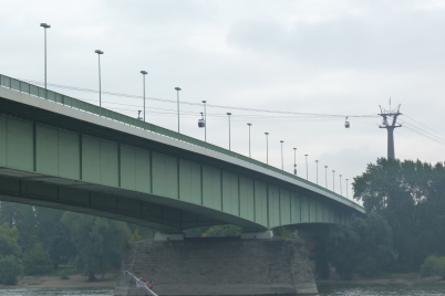 „Für ne Moment“ war damals der Song, den er zur Einweihung in der Seilbahn zum Besten gab. Nun fahren sie Tag für Tag über dem Fluss und über die Zoobrücke, auf welcher das tägliche Verkehrschaos seinen Lauf nimmt.
